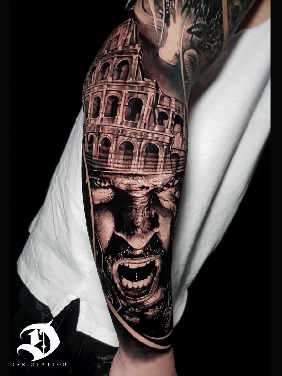 Tattoo Uploaded By Dariotattooarte Roman Warrior And Colloseum Done By Dariotattooarte Dariotattoorte Warriortattoo Bng Sydney Graywash Tattoosformen Colloseum Forearmtattoo Colloseumtattoo Warrior Guerrero Realism Tattoo Blackandgrey